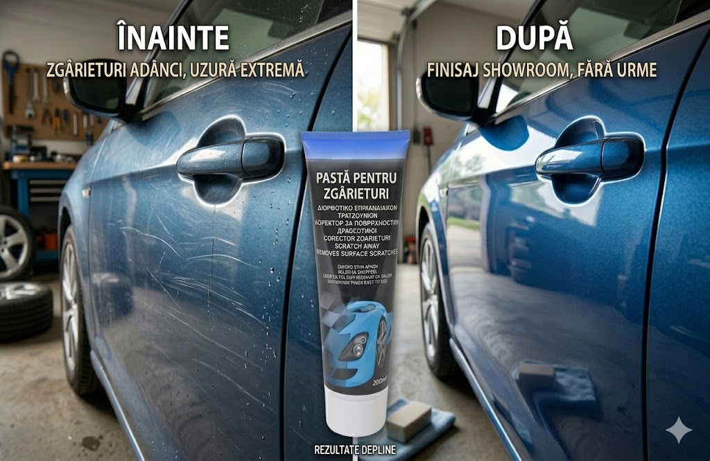 💡 Notă Tehnică: Rezultatele pot varia semnificativ în funcție de adâncimea zgârieturii, tipul de vopsea al mașinii și tehnica de aplicare. Produsul este conceput pentru zgârieturi de suprafață (în stratul de lac); nu va repara defecte adânci care au ajuns la grund sau metal.